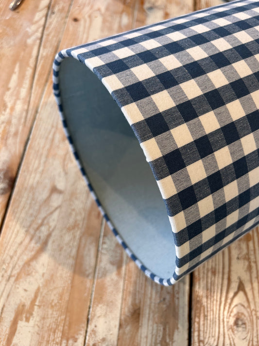 Navy Check & Duck Egg Blue Linen Lined Lampshade 25cm